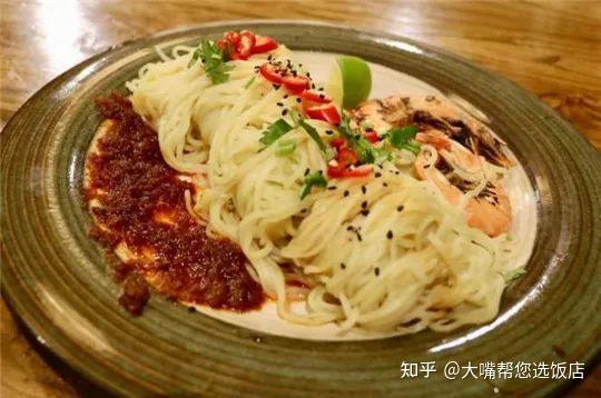 蝦膏拌面,蝦膏很濃郁的味道很東南亞,拌面還搭配了兩只蝦,涼面很勁道。