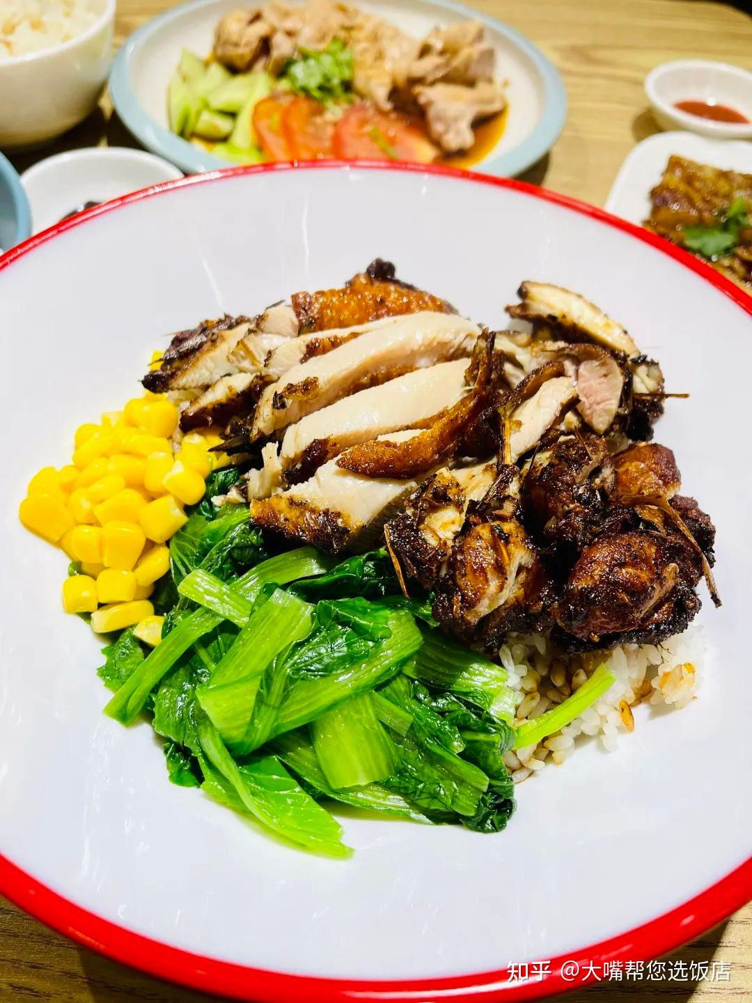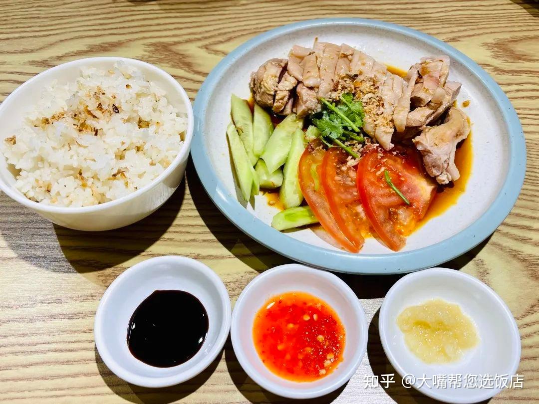 海南雞飯,雞肉清淡帶著微微的香氣,淡黃的海南雞皮Q彈順滑,搭配上甜醬油、辣椒醬和姜蓉醬,雞肉彈嫩,清香十足。