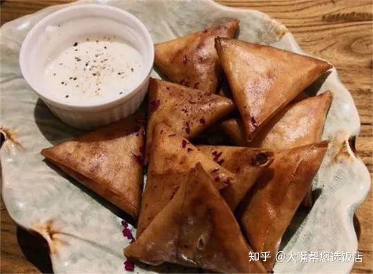 咖喱角:外皮脆脆裹著里面滿滿咖喱,可以選擇沾酸奶吃還可以選擇不沾,都好吃。