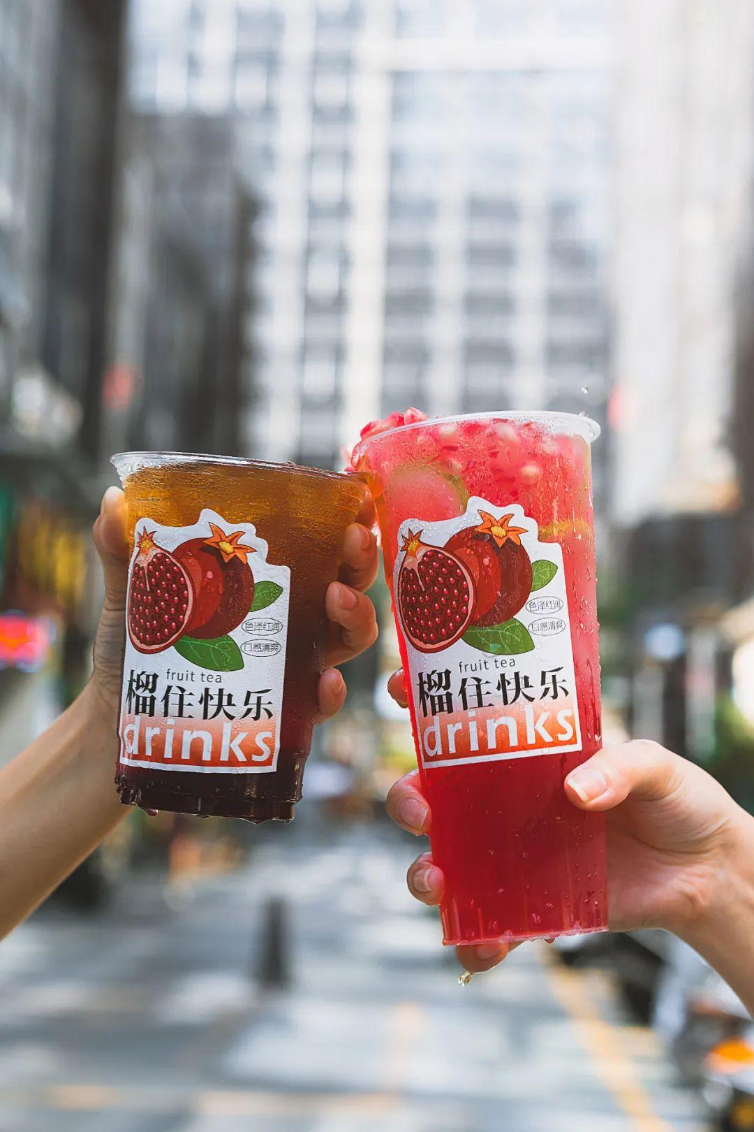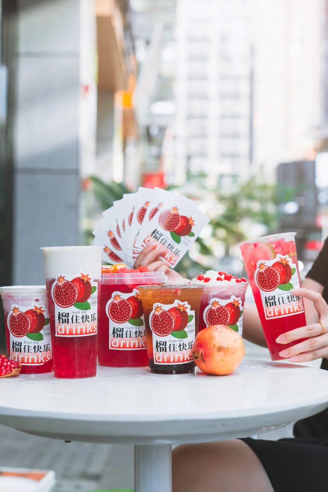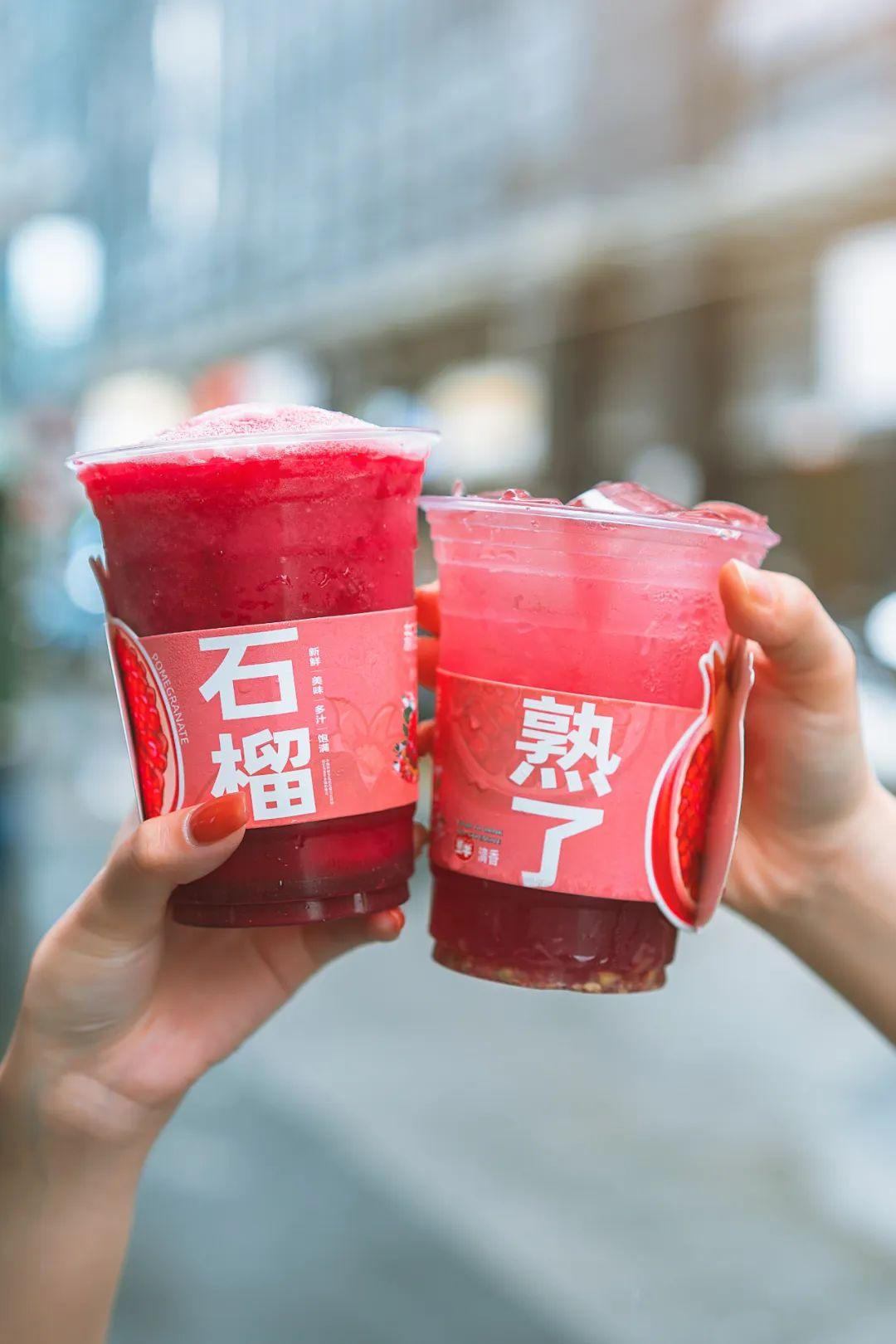 8月1日,檸季趁著七夕變粉推出了一款「是石榴椰」;8月20日,百分茶推出「手剝紅石榴奶緹」。