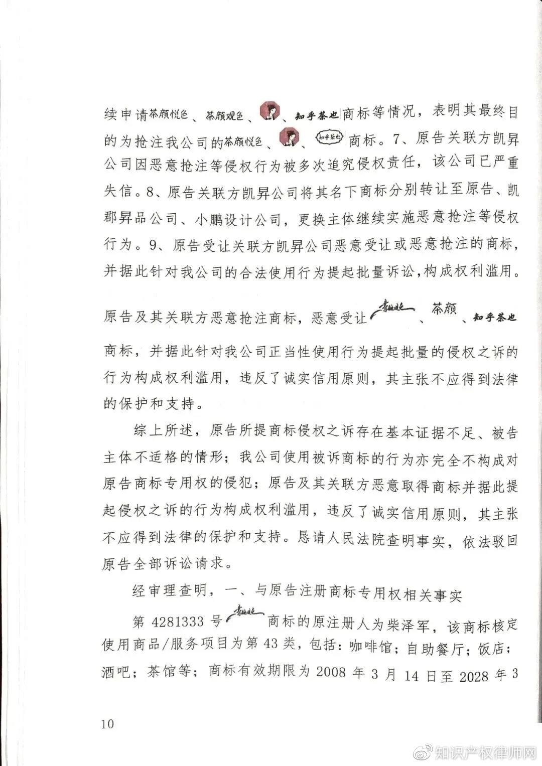 茶顏觀色反駁稱,我店鋪裝修和你不一樣,即使一樣也是使用我自己注冊的商標,茶館裝飾仕女圖亦是有權利基礎的。我們在你們創立之前,已經開始經營啦,只是你們不知道,網上沒有信息,但不代表沒使用。