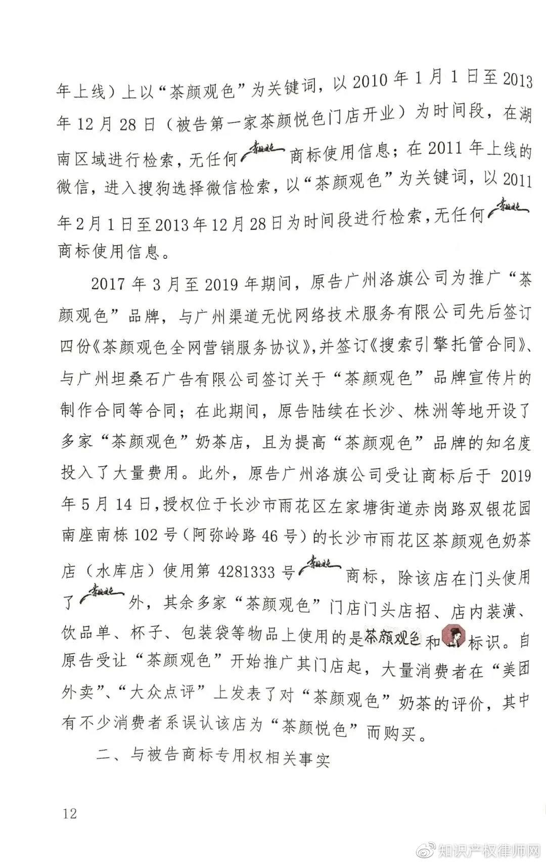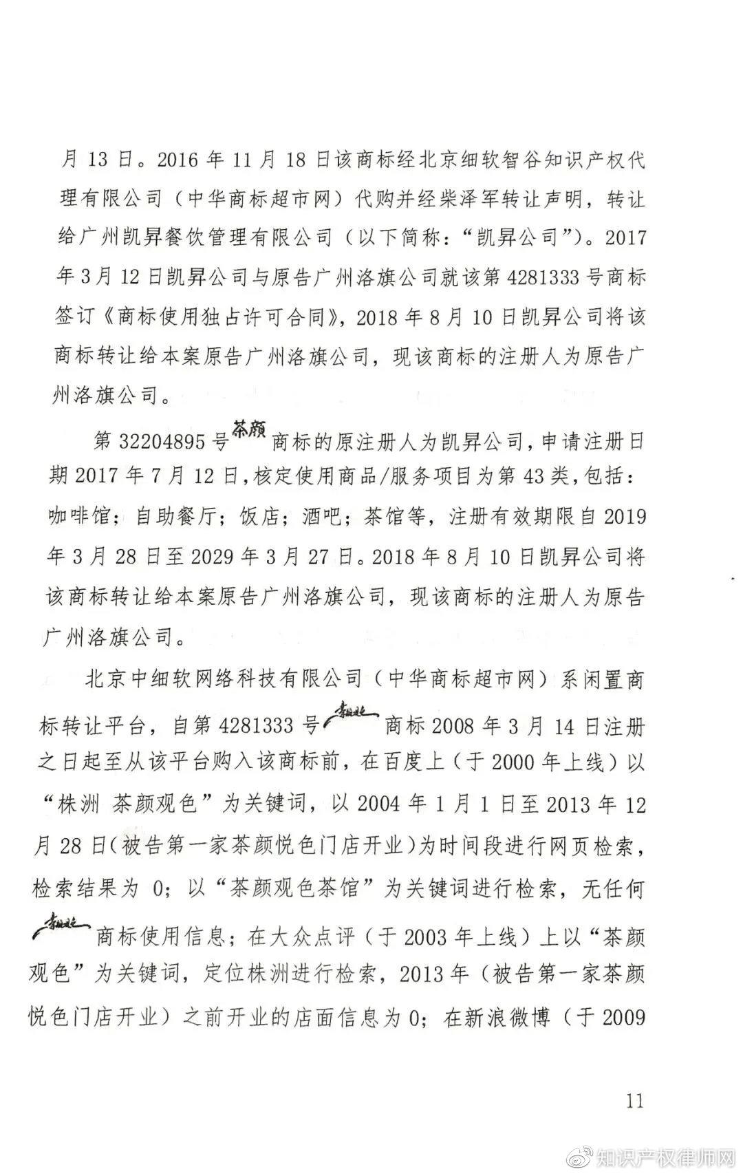 廣州洛旗餐飲管理有限公司自2017年3月開始推廣“茶顏觀色”品牌,2018年8月經受讓取得“茶顏觀色”商標專用權。據“茶顏觀色”官網顯示,第一家茶顏觀色于2010年在廣州開業,2019年5月在長沙開設奶茶店。