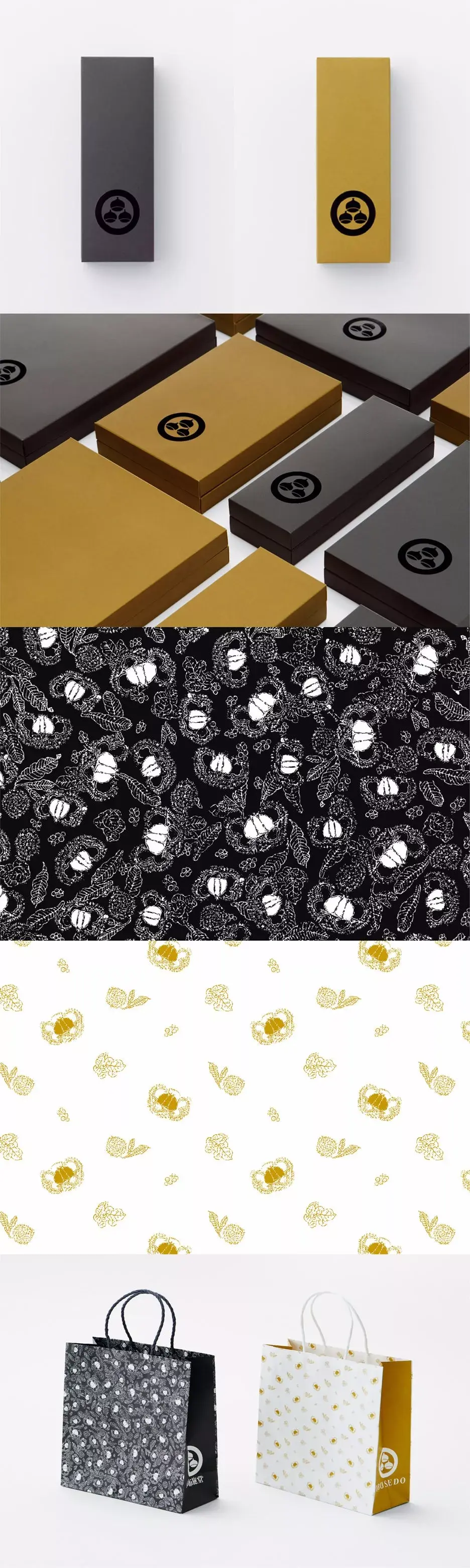包裝主要由黑墨色、栗蓉色組成,前者代表傳統商店的屋頂瓦片,后者則是糕點的顏色。