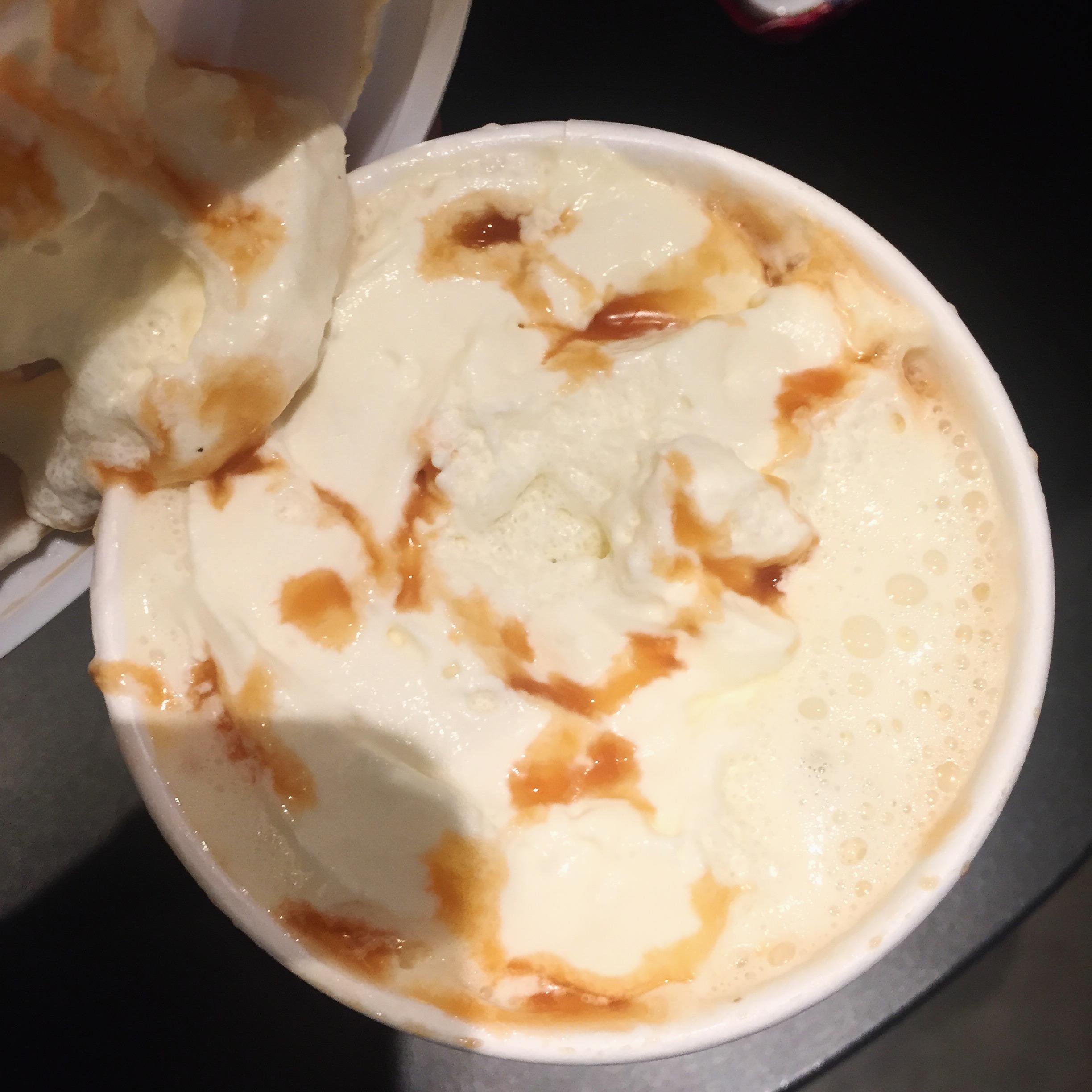 焦糖是在咖啡上加了一層鮮奶油和少許焦糖