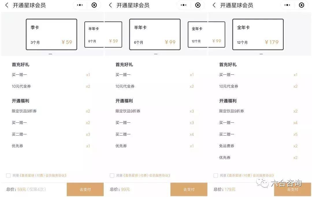 公司推出“星球會員計劃”,打通線上線下會員體系,延長品牌生命力。公司通過“喜茶GO”小程序,推出“星球會員計劃”,分為季卡、半年卡、年卡等類型,會員享受價格折扣、代金券等優惠,還可根據邀請好友數量,獲贈不同價值獎品,利用社交傳播,促進會員數量增長。公司打通線上線下會員體系,將線下實體會員卡用戶,轉至線上“喜茶GO”小程序中“星球會員”,2019年起在全國大力推廣會員計劃,截至2019年2月底,“星球會員”用戶達35萬。會員模式為用戶帶來更便利消費體驗,有利于刺激用戶活躍度,增強用戶粘性,及培養長期忠誠用戶,進而形成公司流量護城河,延長品牌生命力。