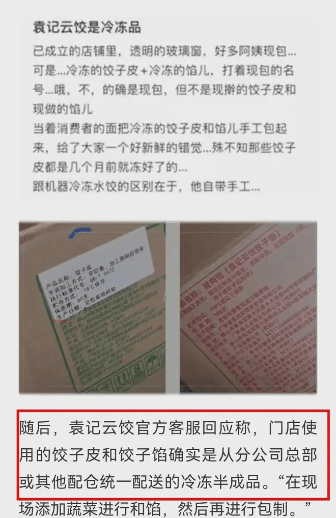 以“現包現煮”著稱的【袁記云餃】被曝出是預制餡料!