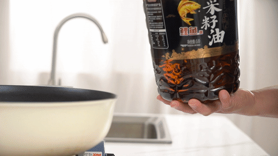鍋中倒入鯉魚牌正宗原香菜籽油1.5升,大火燒至油冒煙即可。(選擇這款油,是因為它精選生態產區優質原料,傳承四川小榨工藝精髓,適度加工,保留更多營養與原香,用它在做紅油辣子的時候,能將辣椒的香味激發出來,做出來的油辣子香氣撲鼻,色澤紅亮。)