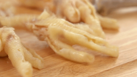 冰水浸泡后可以去除雞爪表面的油分,讓雞爪皮更爽脆。
