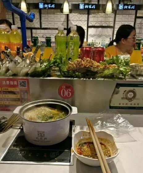 還有一大特色,單身狗的福利!一個人也可以吃小鍋單人火鍋,素菜自助選擇,水果飲料也是不限量供應!性價比杠杠的!