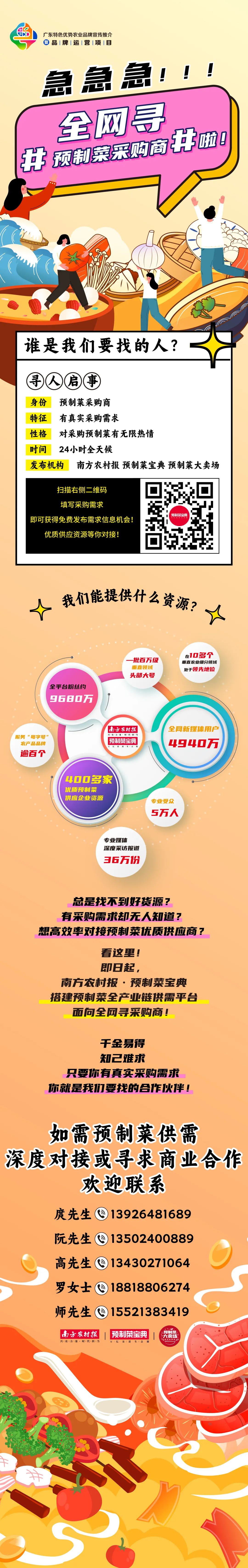 南方農村報-預制菜寶典將持續致力于打造“預制菜采購商-優質供應商”對接平臺,通過搭建共建溝通橋梁,幫助預制菜企業拓展銷路,助力采購商高效尋找貨源,實現供需精準對接。