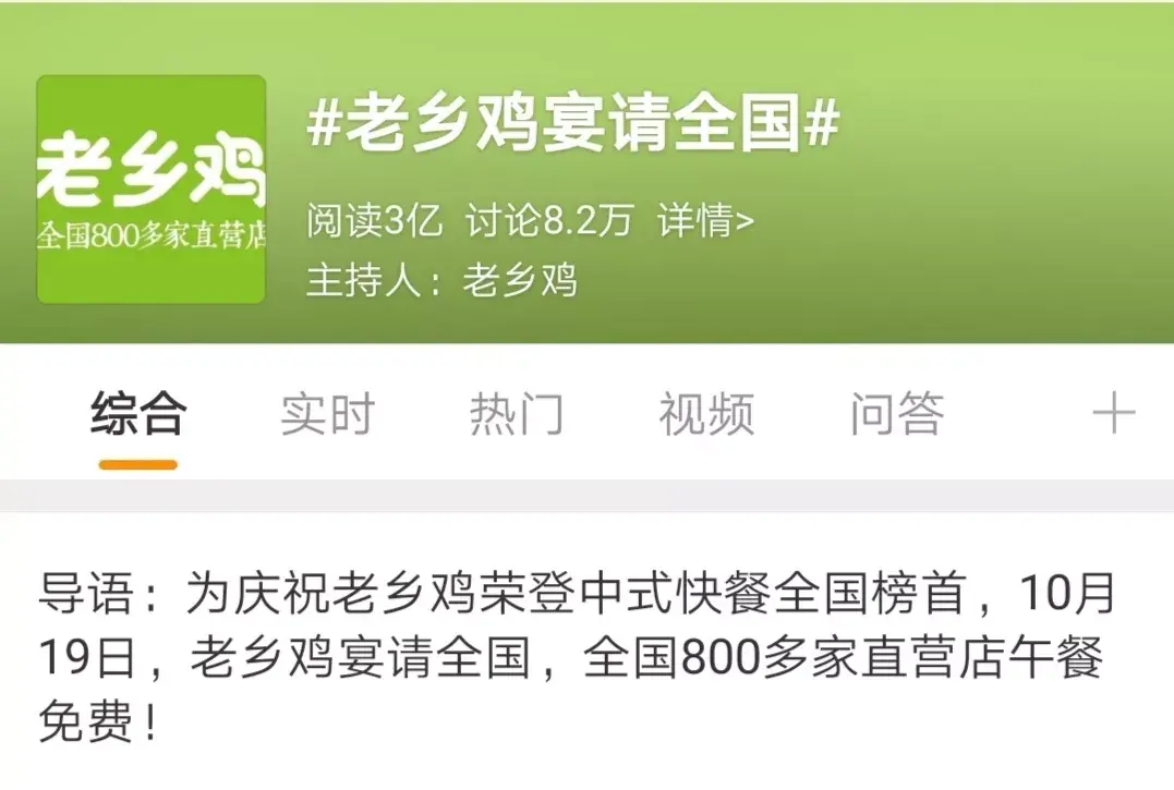 為了慶祝獲此殊榮,老鄉雞竟然宴請起了全國:全國800多家直營店,午餐免費!
