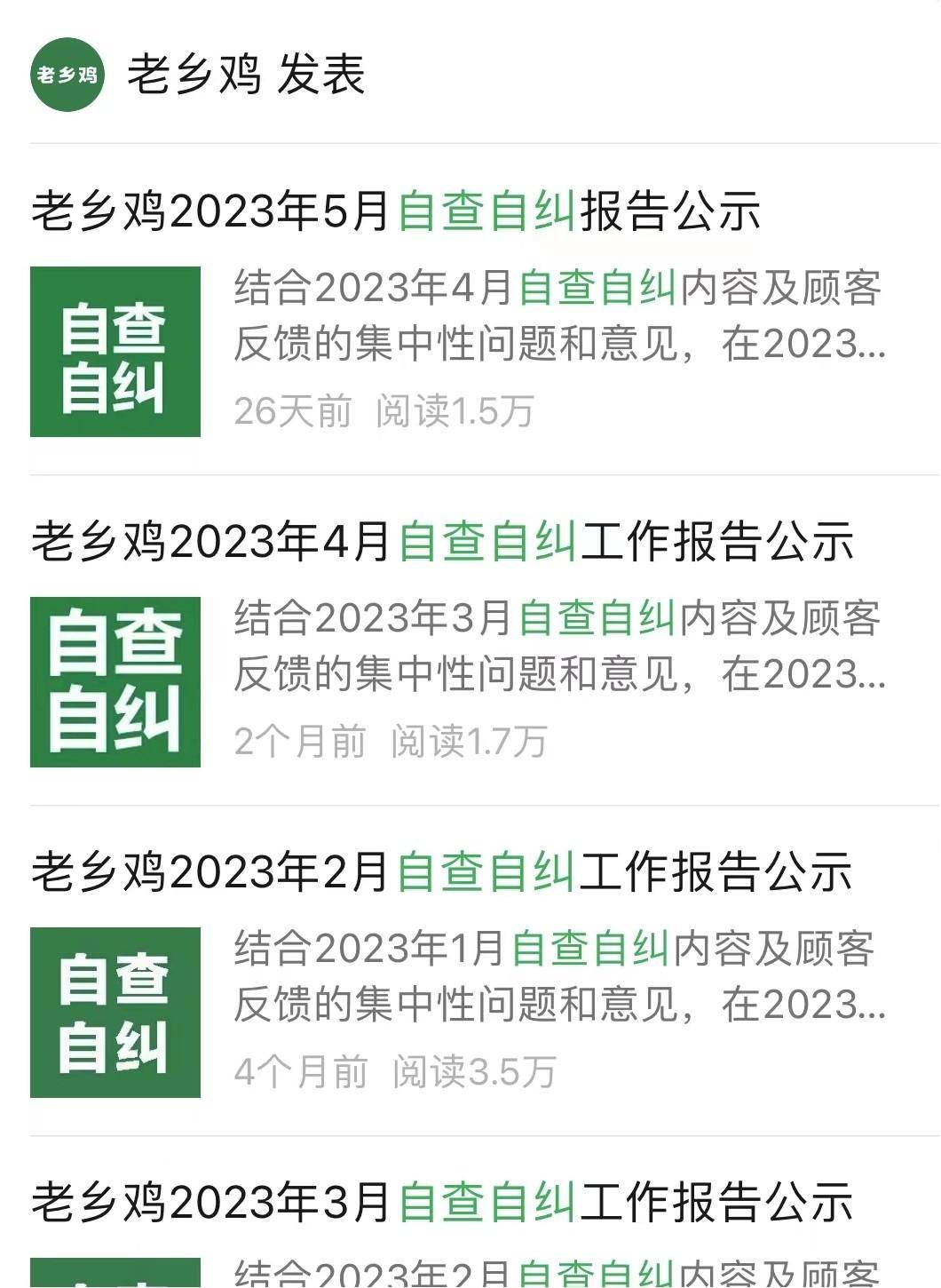 事實上,自2021年5月起,老鄉雞就已經開始主動發布自查自糾工作報告,內容包括餐廳自查自糾、顧客投訴以及神秘顧客體驗等方面,激勵門店做好品質和服務提升,持續改善消費者體驗和滿意度。