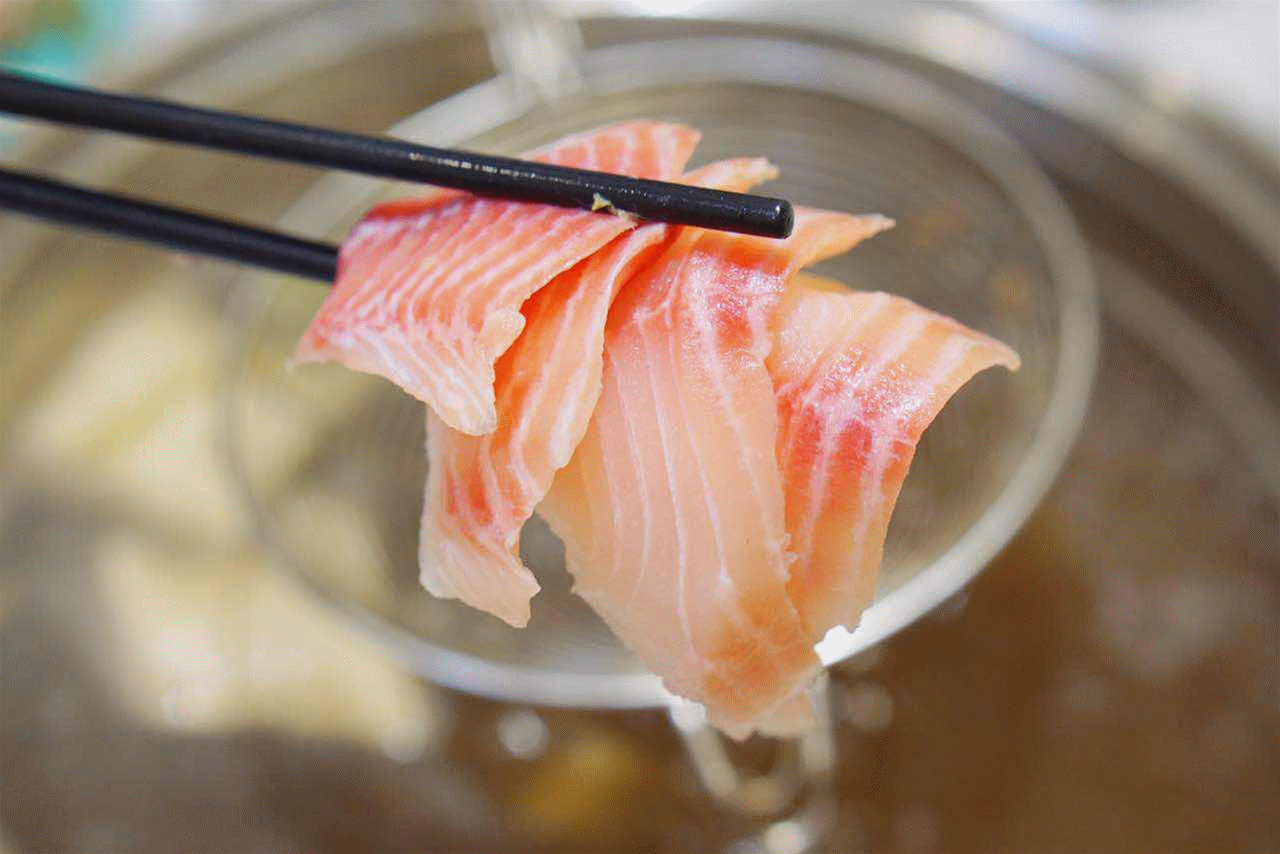 輕輕的夾起數片,放入漏勺中稍稍焯燙就可以咯!除非你對自己的筷功很有信心,否則一定一定要用漏勺哈~~鯛魚肉質細嫩水分含量足。讓入口中輕輕一抿就化開了,真的是入口即化。