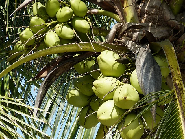 椰子原產于亞洲東南部、印度尼西亞至太平洋群島。椰汁及椰肉含大量蛋白質、果糖、葡萄糖、蔗糖、脂肪、維生素B?、維生素E、維生素C、鉀、鈣、鎂等。每100克椰子中,能力達到了900多千焦,蛋白質4克,脂肪12克,膳食纖維4克,另外還有多種微量元素,碳水化合物的含量也很豐富。總體來講,椰子是低能量、高可溶性膳食纖維的健康食物。