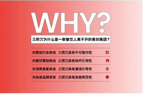 三把刀,是一家專門做餐飲策劃的公司。正所謂術業有專攻,三把刀多年以來一直專注于餐飲品牌營銷,團隊積累了足夠的實力和經驗,足以應對各種不同的餐飲營銷策劃。三把刀總部位于重慶,在成都、上海均有分部,已經實現了全國連鎖。品牌成立至今,業務已涉足中國六大地區及韓國、美國等多個地區,無論你的品牌在何地,都可以享受到最方便快捷的策劃服務。