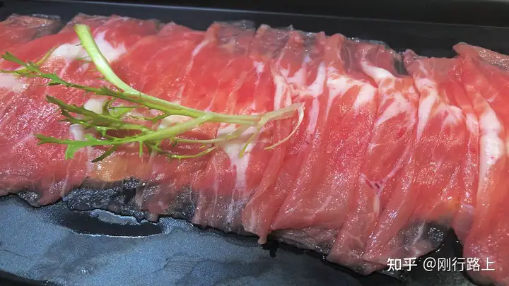 因為點的黑豬肉五花肉片已售罄,所以換成了肥牛。雖然很可惜沒有能吃到黑豬肉五花肉片,但是肥牛也不錯,肥瘦相間,肥而不膩、瘦而不柴,最適合涮著吃。