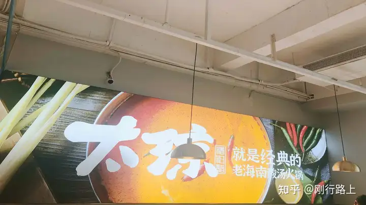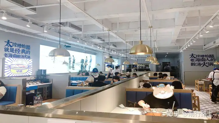 進店之后服務員會詢問幾人用餐,然后說道:“歡迎光臨太瓊糟粕醋”,緊接著店里的所有服務員齊聲喊道:“太瓊糟粕醋,就是經典的老海南酸湯火鍋”。可把我們嚇了一個激靈,這種氛圍很微妙,既尷尬又令人回味,就很歡快。每當有食客進店,這個口號必定響起。
