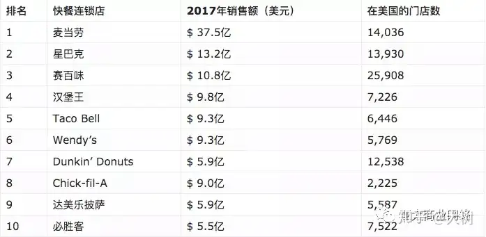 以下是按收入列出的美國排名前10位的快餐連鎖店 :
