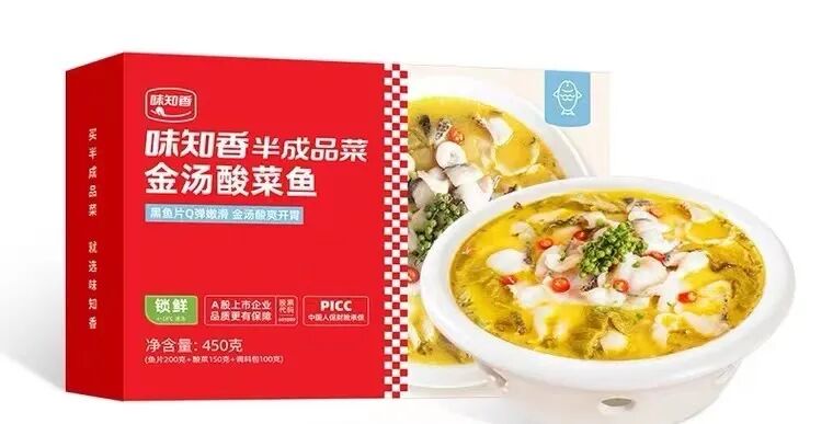 據品牌介紹,新品選用活水黑魚和老壇酸菜。黑魚骨刺少,含肉率高,原條切片后采用急速微動,鎖住水分和營養;老壇酸菜自然發酵,口感地道、脆嫩無渣;精心配比的金湯底料,湯酸爽、味鮮辣。新品免切免洗免調味。