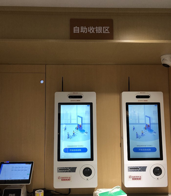 盡管有擺滿貨架的產品可以供消費者自選并且自助結賬,但目前看來,這里更像是一個外送前置倉。界面新聞記者在工作日的下午3點左右走訪時,店里并沒有顧客上門,更多是以外賣平臺的方式接單,再由店員去送外賣。