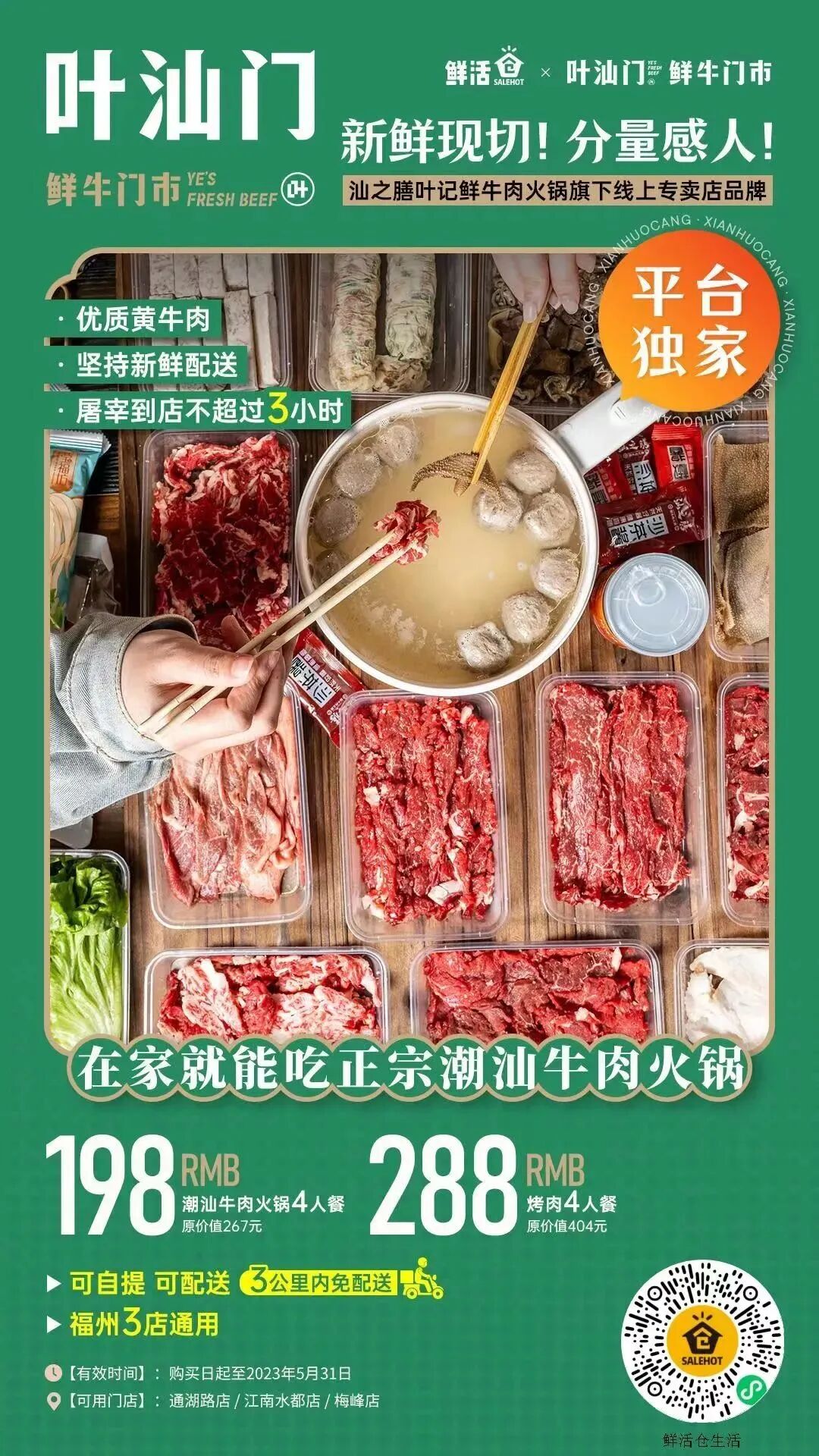 葉汕門 · 鮮牛門市 汕之膳葉記鮮牛肉火鍋旗下 線上專賣店品牌 每天一頭牛,新鮮不隔夜 保證宰殺后3小時內送到門店 專業廚師“庖丁解牛” 每一步都是爭分奪秒,不摻水分 鮮嫩牛肉涮入牛骨高湯 肉質細膩,滿口鮮香 在家也能吃到正宗的潮汕牛肉火鍋啦~ >>掃碼進入購買頁面<< 葉汕門,就是那么火! 葉汕門的牛肉和丸子真的屬于無限回購,每次嘴饞又不想出去吃的時候,最愛找它下單一堆食材寄到家,今天趁著午休,決定偷偷來頓正宗的潮汕風味! 葉汕門是地道潮汕人開的,福州有三家門店,每天7點開門,香到路過的人都要進來探個究竟,連小狗都蹲在門外舍不得走!無論住在福州哪個區,都會吸引一大批忠實粉絲,收獲滿滿好評! 現點現切,新鮮看得見! 作為知名牛肉火鍋品牌汕之膳葉記的線上專賣店,潮汕牛肉最大的特點是只用新鮮的肉,優選黃牛,當天屠宰到店不超過3小時,肉質鮮嫩不注水,現點現切,新鮮不隔夜! 為了保持牛肉新鮮的水分,師傅嚴格把控時間,快速嫻熟地切制,手起刀落,紋理漂亮,色澤鮮紅,充足的水分讓牛肉成了”粘人精“! 無論怎么轉盤、翻滾,牛肉依舊粘盤掉不下來,當然只有最新鮮的牛肉,才敢以360°的姿態展現~ 每日現熬4h大骨湯,香得很! YESHANMEN // 潮汕菜系注重食材的原味,不加過多“修飾”的美味,湯底都是將牛骨用小火慢熬而成的牛骨湯,連牛骨髓都盡數溶解,肥甘厚味!客人下單,撇去浮沫新鮮裝袋,干凈又衛生~ 人氣“鮮肉”,在家也能吃到! 3公里內免費配送,打開盒子所有食物還散發著“鮮”氣,我的快樂終于回來了!而且他家各種地道的潮汕美食這里都有,作為資深老粉,只想說一直沒有讓我失望過。饞了這么久,這次要一頓補回來! 葉汕門的牛肉不僅新鮮,品類還豐富!雪花、吊龍、肥駢、嫩肉、胸口油、牛雜……不同的口感,配合不同的涮肉時間,帶給味蕾不同的體驗!小孩子才做選擇,大人全都要哦~ 倒入現熬牛骨清湯鍋! 招牌牛骨湯每天新鮮現熬,不添加任何添加劑,全靠新鮮的大牛骨熬出一鍋鮮甜的的牛骨湯。吃肉前一定要先盛一碗湯,撒上芹菜沫,保準你立馬愛上這股清新味~ “雪花” 喜歡肥肉的奶香味,就不要錯過雪花牛肉。3:7肥瘦的黃金比例,如同大理石般的花紋肉,入口絲毫不覺油膩,反而帶來脆嫩的感受。 油香與肉香在口腔中完美結合在一起,蘸上沙茶醬,多層口感豐富,是資深的老饕必點至愛。 “吊龍肉” 吊龍是牛脊背上一長條肉,肉微厚屬于肥瘦相間。雖有脂肪,但肥瘦均勻不肥膩,肉質順滑,只需三上三下,就讓人垂涎不已~ 只需幾秒鐘,牛肉頓時香氣四溢。入口十分有韌勁,肉筋與牙齒的碰撞,汁水在口腔中溢出,越嚼越有味,吃完忍不住再上兩盤! “嫩肉” 吃潮汕牛肉火鍋肯定不能少了鮮嫩肉,選用牛后腿部分的瘦肉,幾乎沒什么脂肪。夾一大筷子放入清湯鍋里,三起三落10秒,肉汁都被牢牢鎖住,肉質鮮嫩,回味醇香! “胸口油” YE SHAN MEN // 白花花的胸口油一點都不油膩,下鍋燙熟后變得十分彈牙,油脂的香氣在齒間涌出,無疑是餐桌上各路筷子“爭奪”的C位! “牛舌” 片片薄切的牛舌涮后才能達到美味的口感!入口Q彈有嚼勁,因為薄所以不會過于硬實難嚼,反而越嚼越香,吃起來超feel~ “肥駢” YE SHANMEN // 肥駢一半肥一半瘦,帶點脂肪很是迷人,經過湯底的洗禮,入口就是肉香四溢,吃起來細嫩且有脂肪的香味,肥而不膩。 YE SHANMEN // 吹爆他們家的牛肉丸,純手工捶打而成!顆粒飽滿,肉質細膩,在鍋中充分吸收了湯底的精華,一口咬下即刻biu汁,Q彈到在嘴巴里飛起~ “牛雜拼盤” 耐嚼的牛肉筋、緊實強韌的牛腩、脆嫩的牛小腸……全是牛身上的“小寶藏”,不同的口感,讓你過足嘴癮~ “牛肉串” 烤肉套餐里的牛肉串,宅家有烤爐的有口福啦!結結實實的牛肉粒和牛油相間,被醬料包裹著,高溫下油艷欲滴,肉質鮮嫩! “毛肚” YE SHANMEN // 光看這色澤和倒刺,渾身透露著新鮮勁,是好毛肚沒錯了!涮個“七上八下”,毛肚吸收了牛油的鮮香,咬起來脆爽十足~ “牛百葉” 火鍋店里少說一盤都要三四十的牛百葉,葉汕門的分量也是夠夠的,新鮮程度入口便知一二,脆嫩的口感吸飽鮮美湯汁,太美味! “火鍋配菜” 吃了那么多牛肉是不是還沒過癮?還有店內許多特色菜品不要錯過呀!葷素搭配,讓自己的嘴巴清爽一下! / 牛肉大蔥水餃 / / 五香卷 / 芋頭、鴨血、筍片、海帶苗、娃娃菜、春菜、黃金豆卷、潮汕粿條等食材下到鍋底,吸飽了湯底的精華,讓平凡的食材變得更加濃郁鮮香~解膩又爽口,營養不掉隊~ 汕之膳自家的原漿精釀啤酒一定要嘗嘗,香氣濃郁,風味獨特,口味新鮮純正,牛肉火鍋配酒,真是快意人生~ 兩種口味的醬料,滿足選擇困難癥,沙茶醬味道超正宗超濃郁,和辣椒醬調配在一起美味升級! “超多潮汕特色,歡迎選購” 現代簡約的店內環境,綠色為主色調,暖黃的空間簡潔大方,隨處可見“每天一斤黃牛肉,強壯一家兩代人“、”愛家的人更牛yeah!”的字句,讓人像回家一樣倍感溫馨自在。 店內除了有鮮切牛肉外,還有售賣各式潮汕美食,美味下飯菜、簡單快手菜、每日靚湯、火鍋湯底、醬料等這里都有,炒牛河、鹵味、小酥肉、裸條都是人氣選手! 價格不貴,分量又多,每天來這逛上一天,一日三餐都不用愁了。回頭客特別多,都說這家店比菜市場還新鮮,全家人都喜歡吃。沒吃過的友友們快來試一試! ●LIVE = 葉汕門·鮮牛門市(通湖路店) =