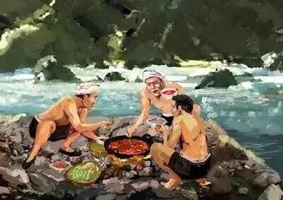 停船就生火做飯,炊具是一個瓦罐