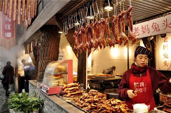 小吃店更是多,而且與大多數城市的美食街熱鬧混亂、高同質化不同,四川小吃種類多,腦花面、宜賓燃面、缽缽雞、肥腸粉、冒菜、兔頭等等,每一樣小吃單拎出來都可以在春熙路撐起一個店。