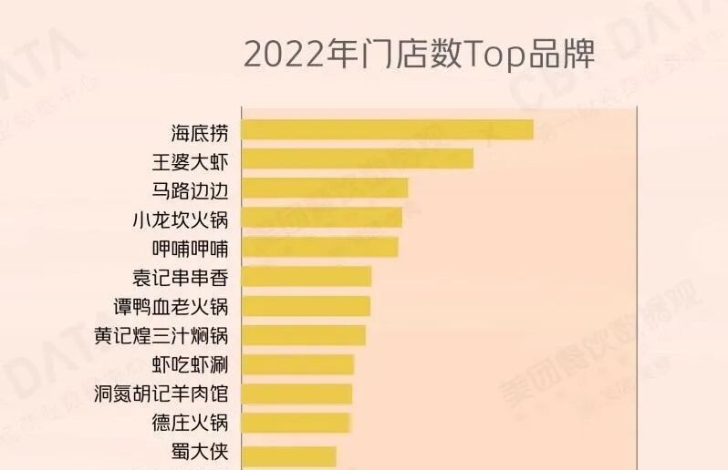 根據美團最新發布的《2022年火鍋品類發展報告》,在2022年火鍋門店數量排行榜上,小龍坎排名第四,蜀大俠排名第十一,兩者皆為當下火鍋賽道的腰部王者品牌。