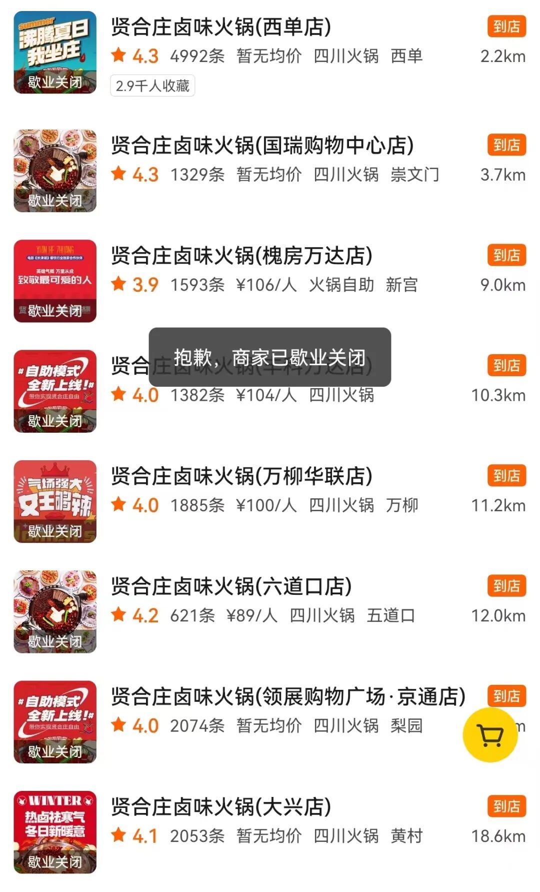 不僅僅在北京,賢合莊在其他一線城市早就停止營業。