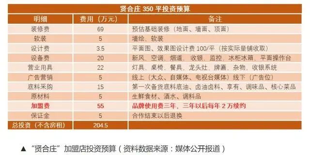 雖然加盟費在40萬元,但是一家賢合莊的開張卻要數百萬的投資。