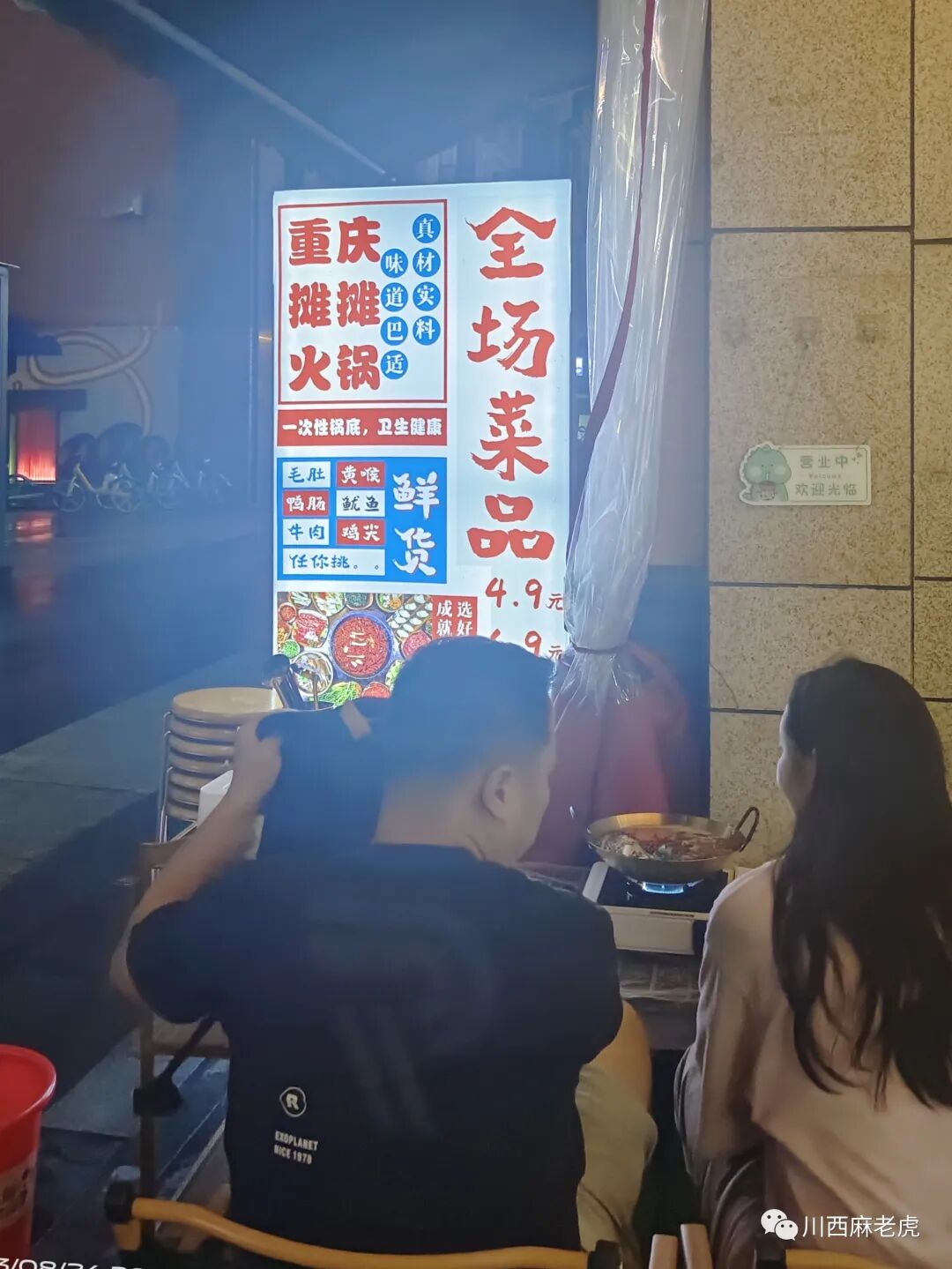 坐標在成都溫江,這家地攤火鍋來自重慶,味道還行,就在我家附近。我是之前開業那幾天團購的好便宜才二十塊錢。現包含了兩個油碟和兩瓶飲料,一份鍋底,菜品有粉絲土豆黃瓜,血旺,雞胗,鴨腸,火腿腸,烏魚,雖然是說的二人餐,但是每盤菜份量有點少兩個人吃估計懸,我一個人吃正好,不知道兩個人來會不會份量多一點。這里生意挺好,我去的時候下面只空了兩桌,不知道是不是因為剛開業在做活動。