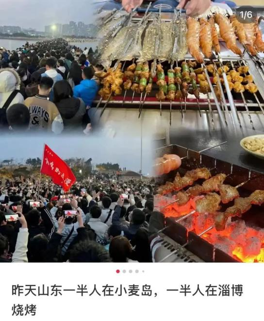 也有一位UP主同樣寫道,最近在山東旅游的年輕人,一半在小麥島,還有一大半已奔向了淄博吃燒烤。