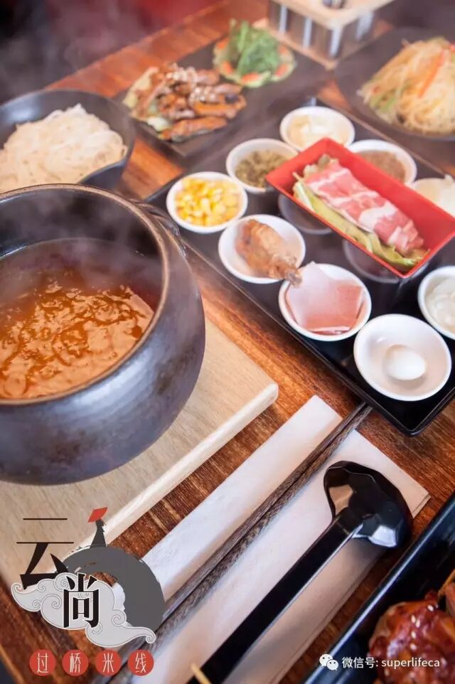淑女翹首小橋窈窕,一鍋米線送情人。