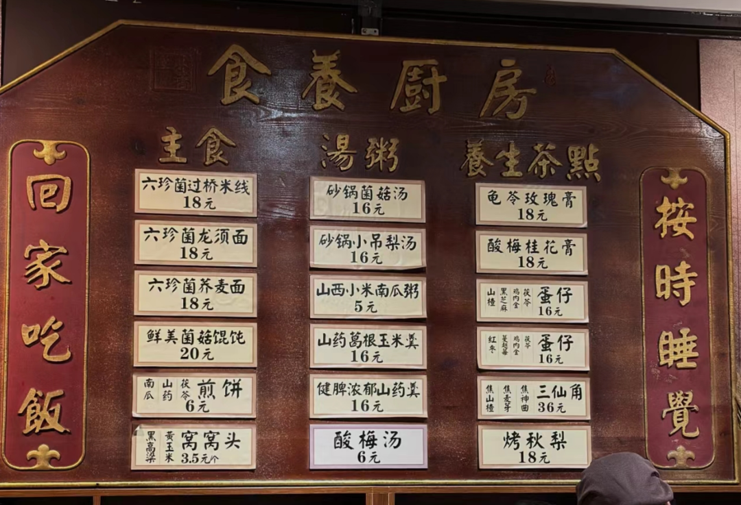 繼“去中藥房配酸梅湯”火了之后,年輕人又排隊去中醫館吃飯了!最近,河南鄭州一家開在中醫館里的“養生”餐廳爆火!里面賣六珍菌過橋米線、茯苓煎餅、山藥葛根玉米羹等各類有中藥成分的養生主食、湯粥和茶點,涵蓋一日三餐!據說,這些藥膳有健脾胃、促消化、減肥、降糖等不同功效,來吃養生飯的人天天排隊到了大門口。網友們直呼:“求求了!在全國開連鎖吧!”、“吃完這一頓感覺老健康啦,建議全國推廣!”養生餐食的爆火暗藏著年輕人普遍的健康和食安焦慮,那么,養生餐飲會不會借勢又將迎來新風口呢?時下最火爆的飲料探店,不是網紅奶茶店,而是中藥店!近日,“中藥版酸梅湯”突然火了,#去中醫館買酸梅湯#的話題占據各大平臺熱搜榜,而且因為網購酸梅湯訂單太多,居然把有些醫院的服務器也擠爆了,工程師不得不連夜搶修。這幾天,河南鄭州的東濟堂被前來打卡養生藥膳的年輕人們擠爆了!“我們也沒想到這么多人,酸梅湯已經賣斷貨了,很多餐食都來不及做。大家從網絡上知道了我們這個食養廚房,都來體驗這個食養藥膳、茶飲、 甜品之類的。目前的接待量已經達到了300人次,來我們這兒體驗這個食養藥膳的人,都已經排到大門口了,年輕人比較多。”東濟堂的工作人員也覺得很詫異,他們店的“食養廚房”突然就火了。這個食養廚房位于該藥館的一樓大廳,是店中店的形式,有正規的餐飲營業執照。餐廳的營業時間是從早上8點,到下午18點,三餐都有。大廳里陳列著有名的中醫藥材和擺件,賣一些艾草貼、刮痧板等周邊,還有“手工煎藥房”,環境古樸自然,可以聞到淡淡的藥香。用顧客的話說就是:“人間煙火氣還帶著中藥味。”主食包括六珍菌過橋米線、龍須面、蕎麥面,都是18元一碗,還有菌菇餛飩,20一碗;南瓜、山藥、茯苓味的煎餅,6元一個;以及黑高粱、黃玉米的窩窩頭,3.5元一個。湯粥有砂鍋菌菇湯、小吊梨湯、山藥葛根玉米羹、山藥羹等,都是16一碗;時下爆火的酸梅湯是6塊一包;常見的小米南瓜粥5元一碗。茶點則有龜苓玫瑰膏、酸梅桂花糕都是18元一份;山楂、紅棗、黑芝麻等多種口味的蛋仔,16元一份;還有大爐子烤梨,6元一個。“窩窩頭和菜餅是家里做的那種味道,蕎麥面的味道挺清淡的,有點像小時候媽媽煮的掛面湯,感覺很健康。”多位顧客反映。大廳還提供免費的秋季潤肺茶,茶里有北沙參、麥冬、枸杞、桂花、桑白皮等中藥材,養陰潤肺,清心潤燥。早上11點的時候,顧客就已經排到了大門口了,排到100多號了,排隊的人里不乏背著書包的大學生。據店員介紹,這里的藥膳有健脾胃、促消化、減肥、降糖等多種功效,還會根據二十四節氣變化,去提供不同的養生餐食。網友逗趣稱:“到時候,跌倒損傷的一桌、結石的一桌、腎虛的一桌……這不,病友搭子不就來了么?!”“餐館做夢也想不到,干掉自己的不是同行,竟然是中醫館;學醫的做夢也想不到,職業的盡頭竟然是廚子!”也有不少網友紛紛羨慕地表示:“吃完這頓飯,感覺身心都變健康了。”、“求求全國遍地開花吧,這不比預制菜好上一百倍啊!”、“我們建議,全國開連鎖!”