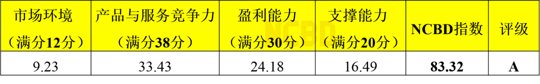 NCBD指數和評級:83.32分,A級。測評結果為優秀,風險較小,可以加盟。