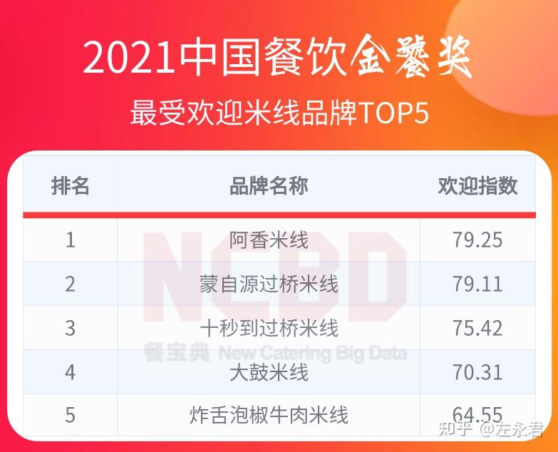 32、最受歡迎米線品牌TOP5:阿香米線,蒙自源過橋米線,十秒到過橋米線,大鼓米線,炸舌泡椒牛肉米線。
