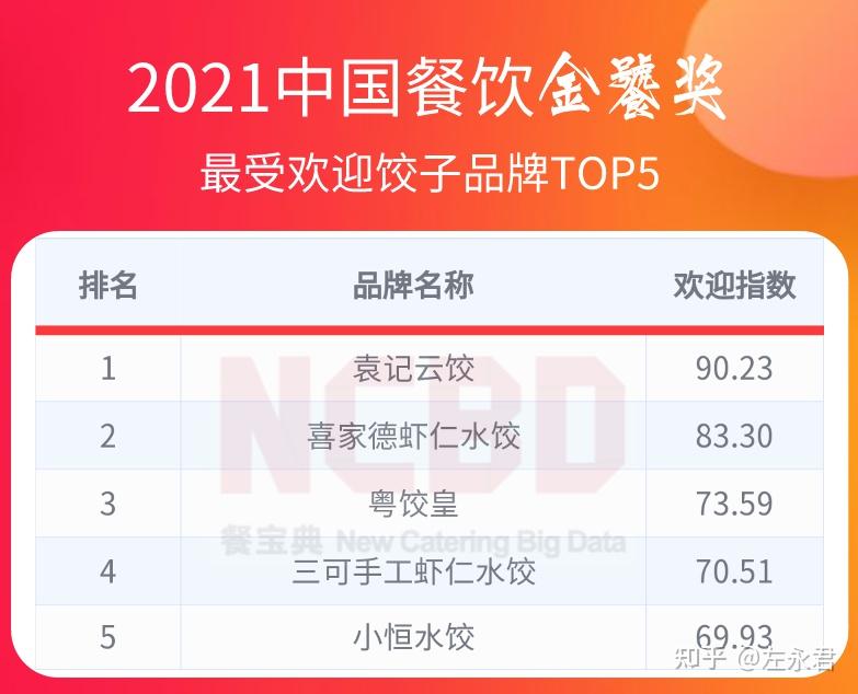 29、最受歡迎餃子品牌TOP5:袁記云餃,喜家德蝦仁水餃,粵餃皇,三可手工蝦仁水餃,小恒水餃。