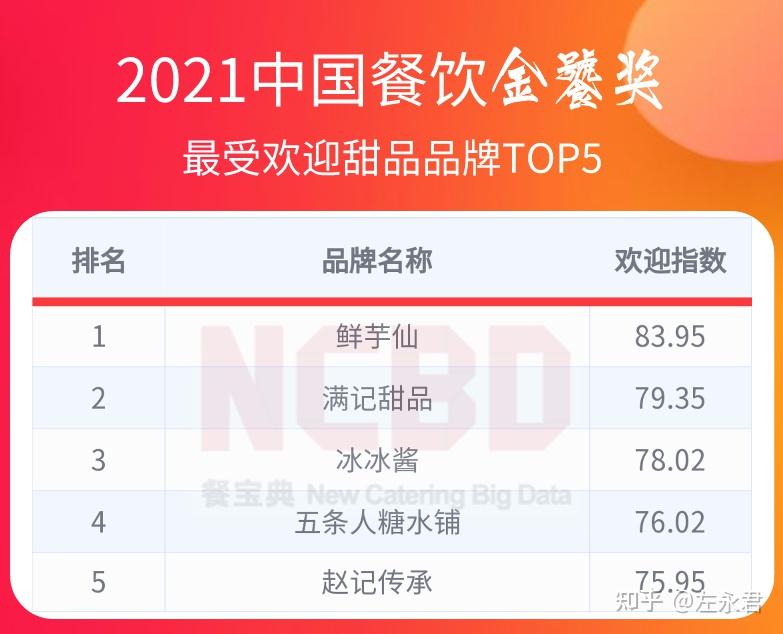 30、最受歡迎甜品品牌TOP5:鮮芋仙,滿記甜品,冰冰醬,五條人糖水鋪,趙記傳承。