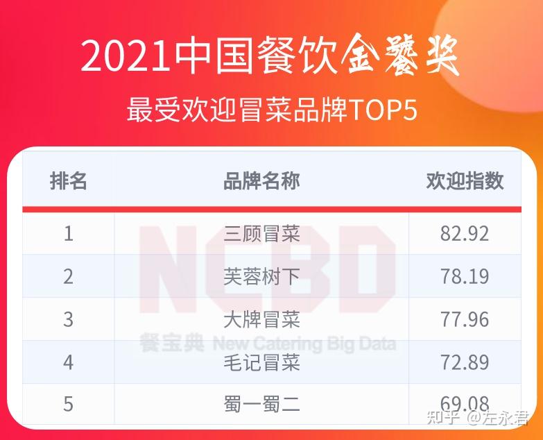 34、最受歡迎冒菜品牌TOP5:三顧冒菜,芙蓉樹下,大牌冒菜,毛記冒菜,蜀一蜀二。