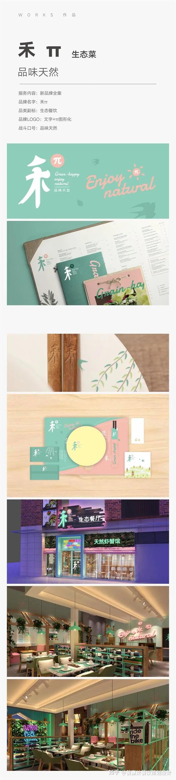 【面子工程亮點】禾π,主要是以當季蔬菜瓜果為主打的健康餐飲品牌。為了吸引年輕人“入場”,品牌從定位、名稱、VI設計、物料設計、空間設計等植入時尚基因,多方面詮釋何為“網紅生態菜”;名稱“禾π”,禾間谷物,田野美味。π,時尚潮派,中英混搭更潮;“艾綠+馬卡龍粉”的色彩碰撞,彰顯品牌年輕、優雅、清麗、舒適的時代潮流感;空間設計綠色打底,粉絲增添溫柔;店內文字裝飾等選用青春霓虹燈飾,烘托就餐氛圍,消費者用餐體驗更溫暖;現代小資和柔暖田園互相交織,提升品牌格調,網紅時尚在色彩的組合中悠然綻放。