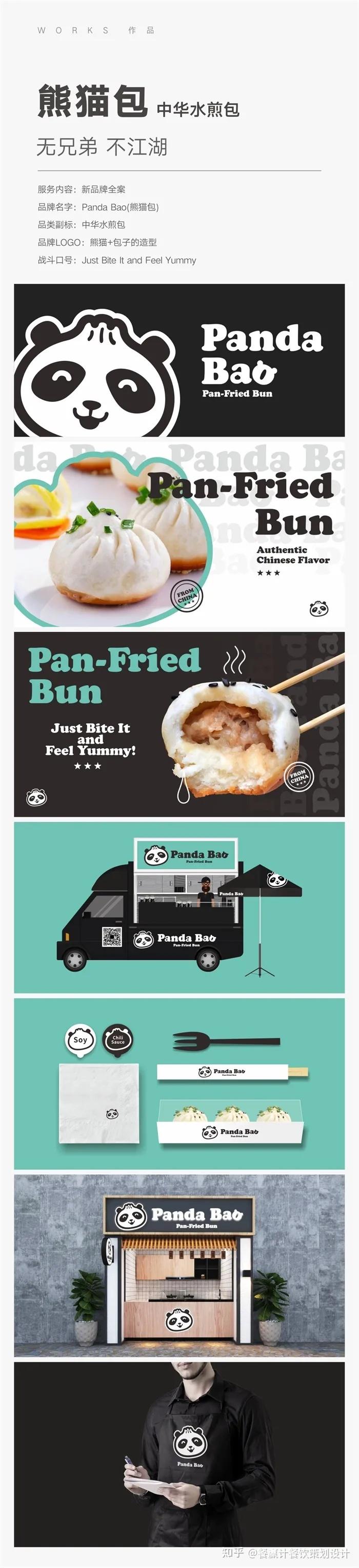 【面子工程亮點】項目投資人是中國人,在東歐經商,有時特別想念祖國美食,從而萌生把中國街頭小吃水煎包帶到歐洲的想法。我們用全世界人民都很喜愛、能代表中國的動物——“熊貓PANDA”作為品牌名字,而產品名稱“Bao”在英文中也是包子的意思,于是“Panda Bao”就誕生了;LOGO設計把包子和熊貓融為一體,親和可愛、討喜接地氣;宣傳物料主色調選用流行時尚清新的薄荷綠,輔助色選用簡潔中性的黑白色,既保留熊貓形象的“本色”,又能更大化的適應國際審美;少即是多,Panda Bao門店是柜臺販售式的小吃鋪,考慮到大量復制落地,空間設計非常簡單,簡化展開難度、減少連鎖成本。Panda Bao以熊貓作為超級符號和代言人,快速地吸引全世界男女老少吃貨的目光,營銷傳播自然事半功倍。