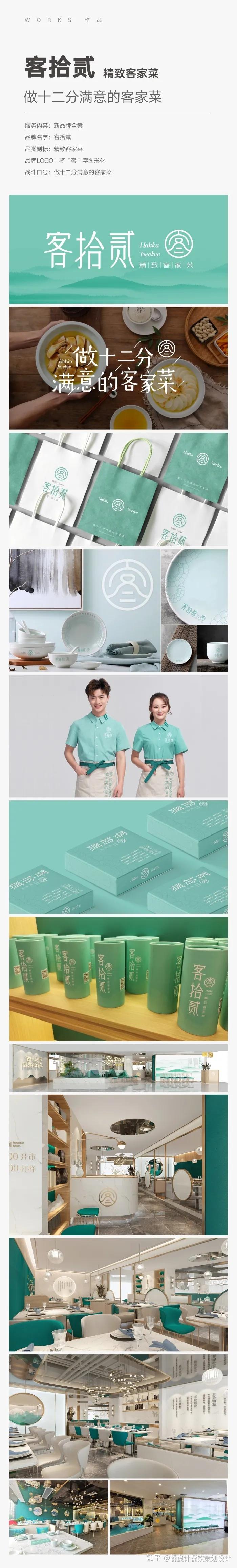 【面子工程亮點】客家菜好吃,老少咸宜,但傳統做法比較粗獷,菜品分量足,擺盤不美觀,從品牌差異化的角度,我們決定要打造一個精致的客家菜;“做十二分滿意的客家菜”,既是品牌的戰斗口號,也詮釋和呼應了品牌名稱“客拾貳”;品牌VI主色采用了現在流行的薄荷綠,LOGO和名稱字體都采用較為有曲線美的設計思路;店面空間采用輕奢的設計風格,配上薄荷綠的VI主色,整體具有一定網紅氣質;餐具的色彩也是薄荷綠,款式也相對精致。