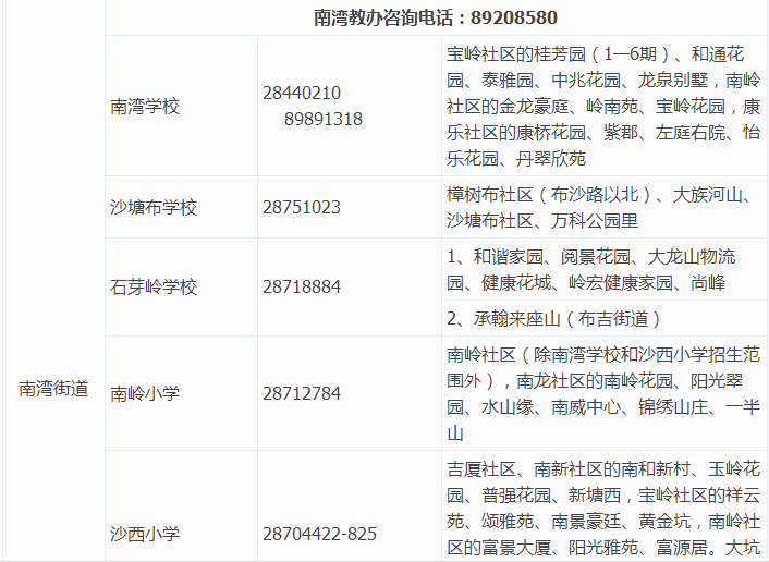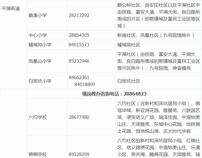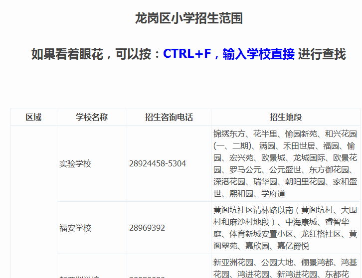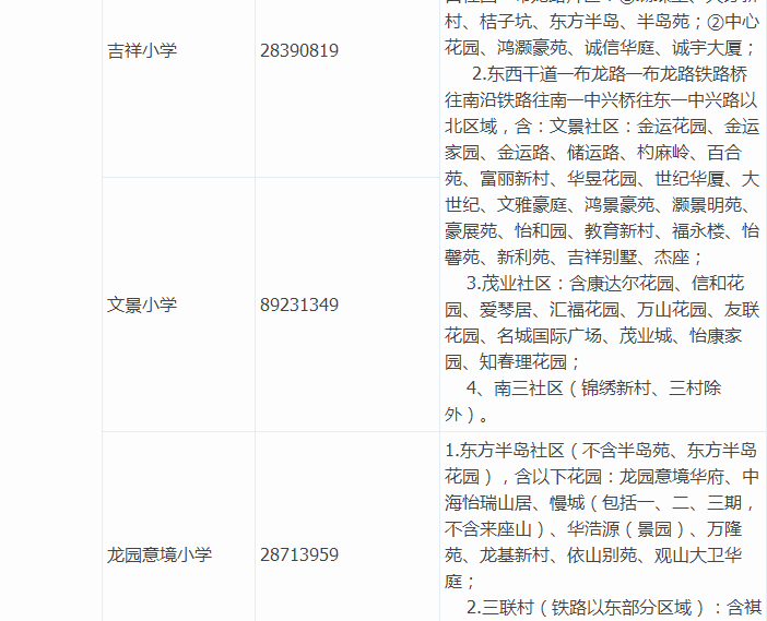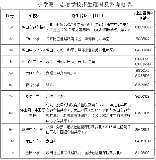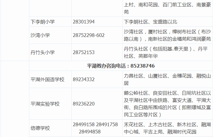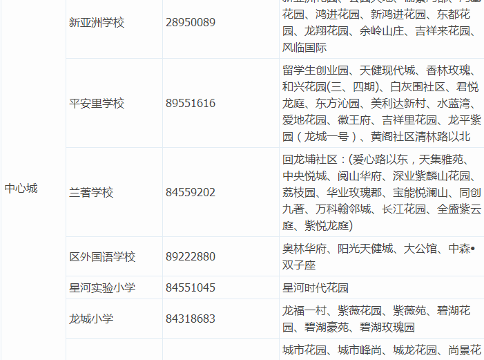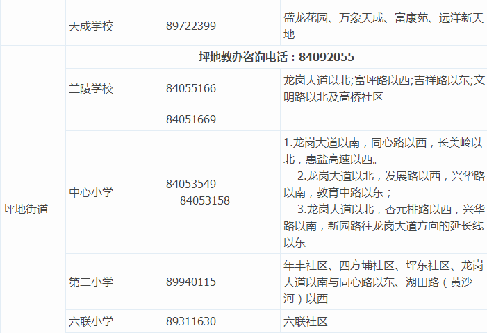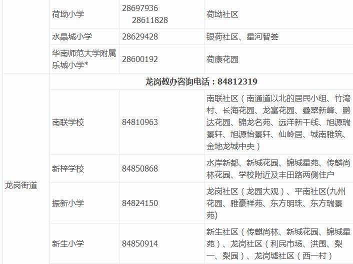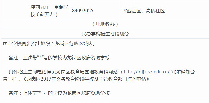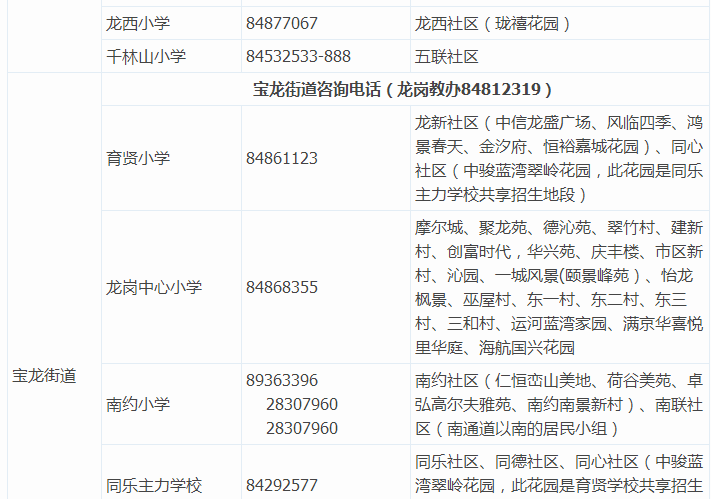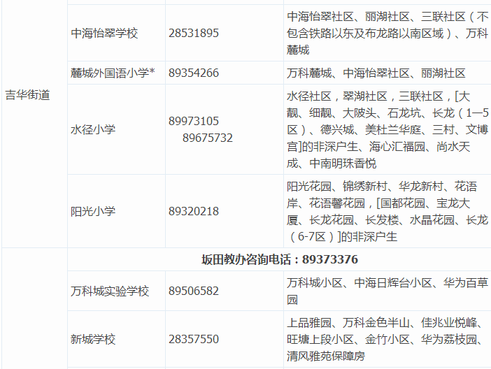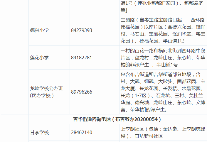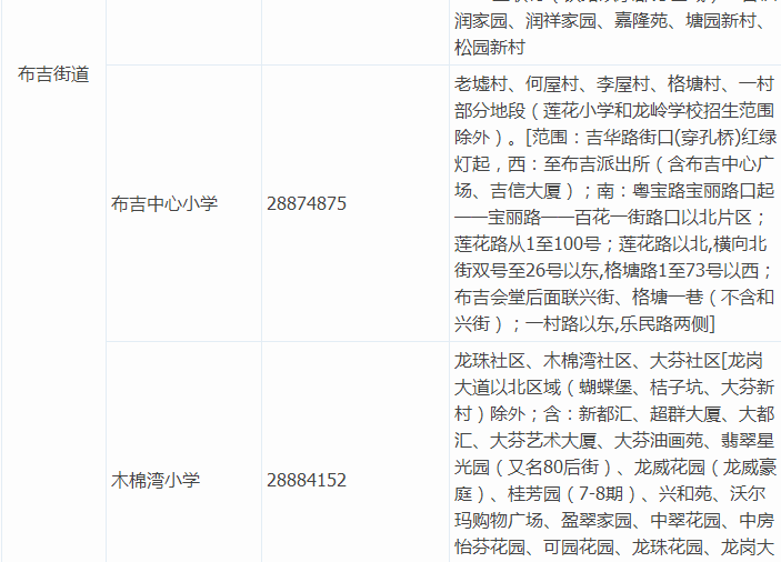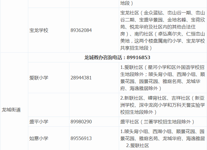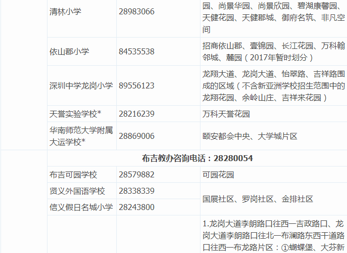 2017龍華區非大學區學校招生范圍轄區學校招生范圍接受申請學位類型咨詢電話