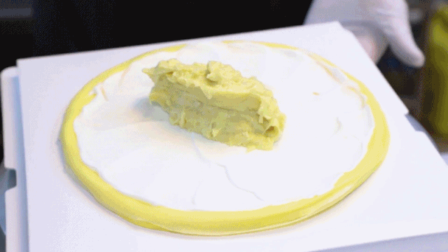 迷戀榴蓮馥郁,又流連芒果酸甜,金燦燦的薄軟餅皮下充滿誘惑,清甜芒果、香糯榴蓮順著奶油滑上舌尖,冰冰涼涼化在嘴里,一半芒果酸甜縈繞舌尖,一半榴蓮馥郁沉淀心田